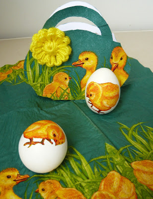 Аз миналата година пробвах декупажната техника в-у сварени яйца. Ако се използват малки елементи е по-лесно, но големите се лепят много трудно предвид облата форма на яйцето. Освен това пластът салфетка е много тънък и е пипкава работа да го залепиш равномерно без "балончета" или без да се намачка. Също така много лесно се къса.