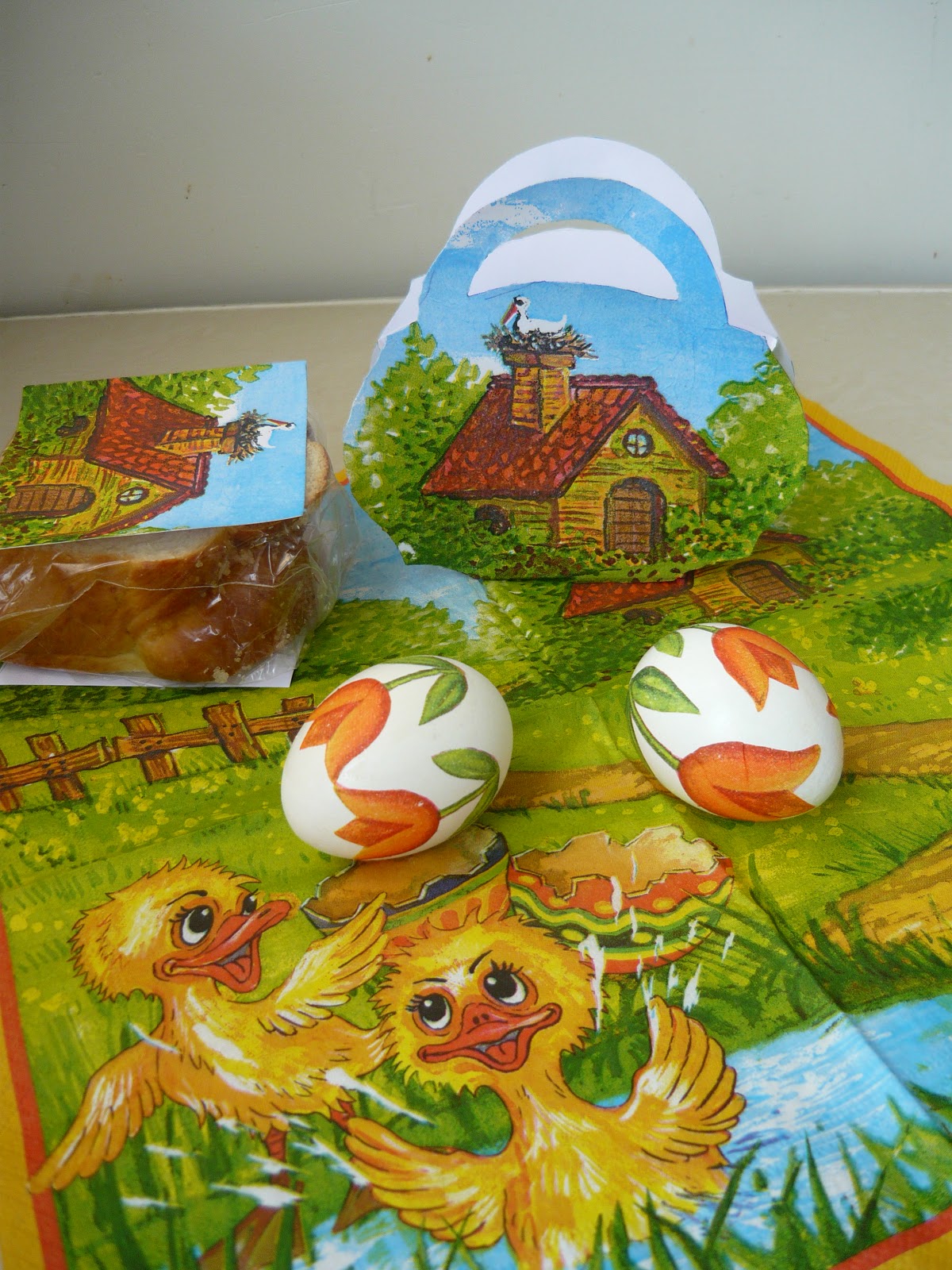 Аз направих няколко държача за яйца, ей така набързо, защото патето ми купи вчера много хубави кошнички за празника и мисля там да си слагам яйцата. Тази седмица имам много деца, с които ще правим такива неща и направих примерни за тях и затова ще ви ги покажа. Децата обичат да се занимават с това и въпреки че нямат труд и техника с мен, ще го направим, за да им е по-весело, пък и ще ги разпитвам, ще вкарам учебния предмет в играта и така няма да усетят, че става въпрос за учебен процес.